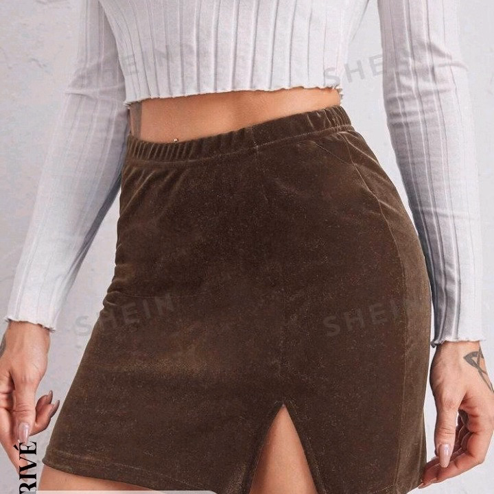 Chân Váy Nhung Xẻ Tà Hot Tren Thế Giới Yvy24_ Triệu Vy Store