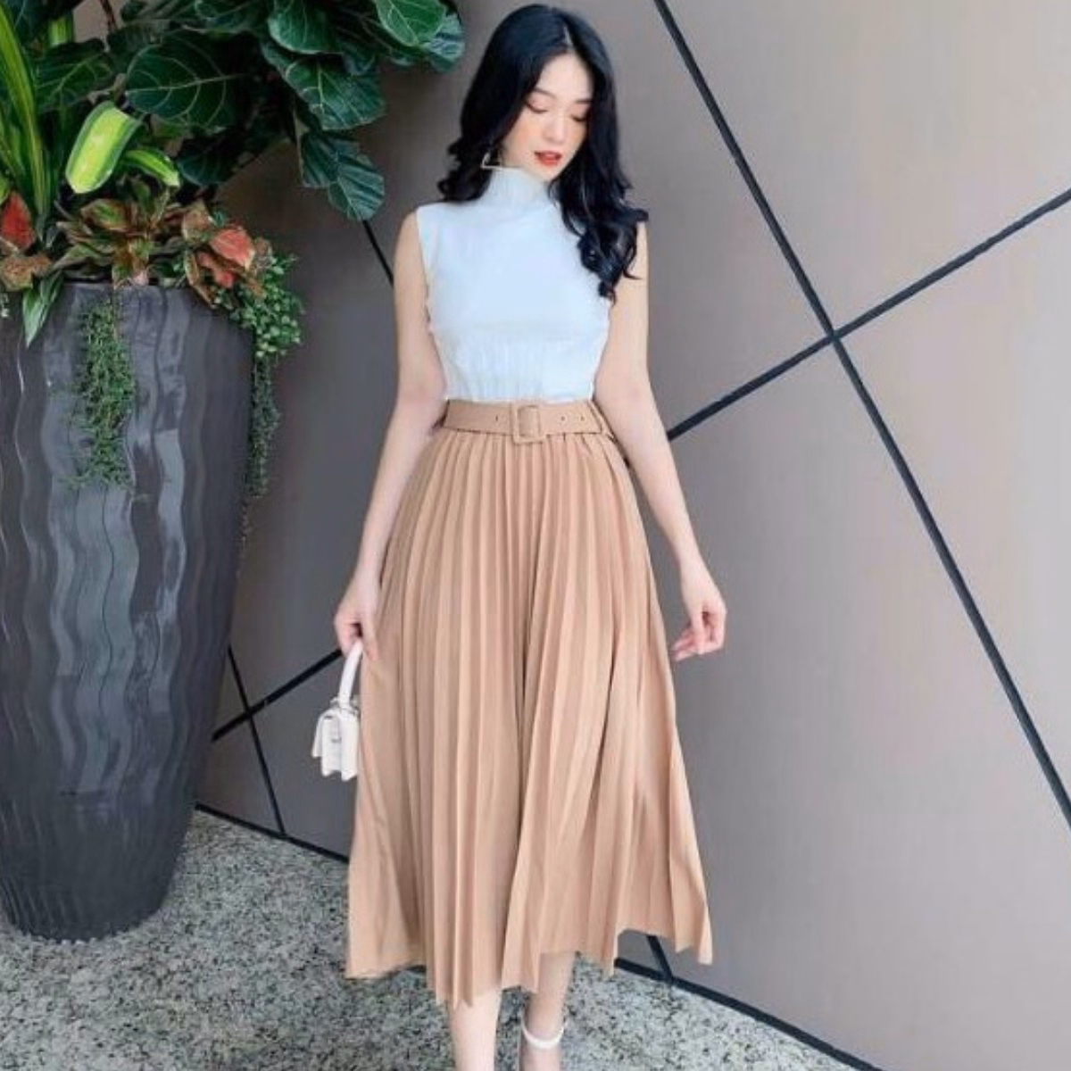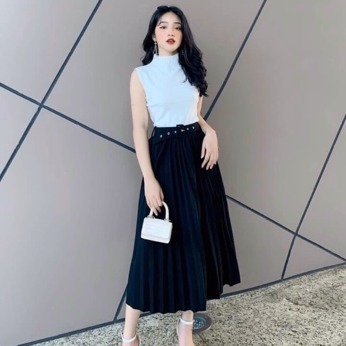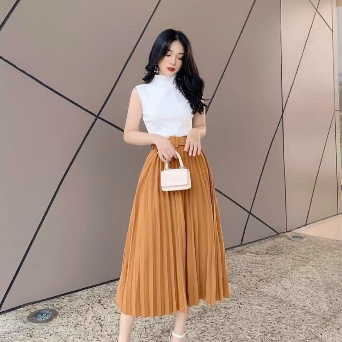 Chân Váy Xếp Ly Kèm Đai Hàng Quảng Châu Chất Đẹp, Chân Váy Xoè Dài Xếp Ly Thời Trang – Dmastore
