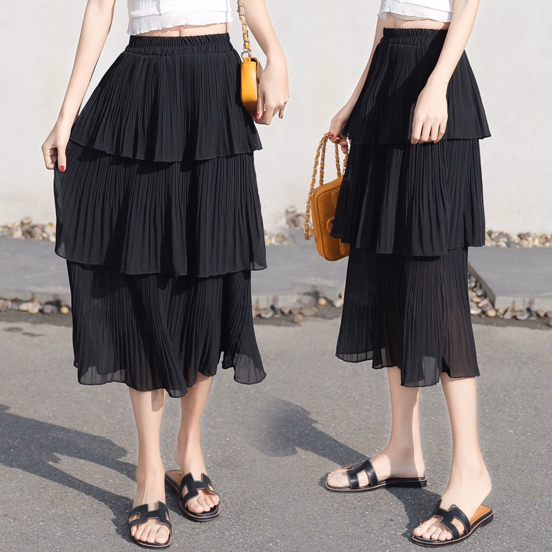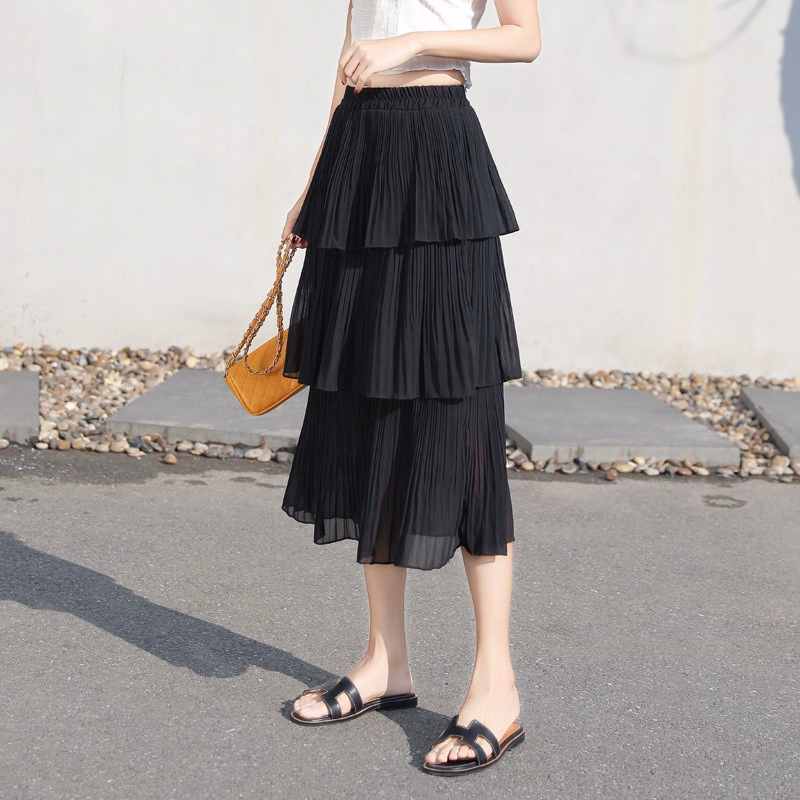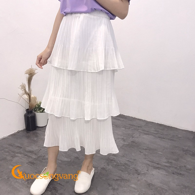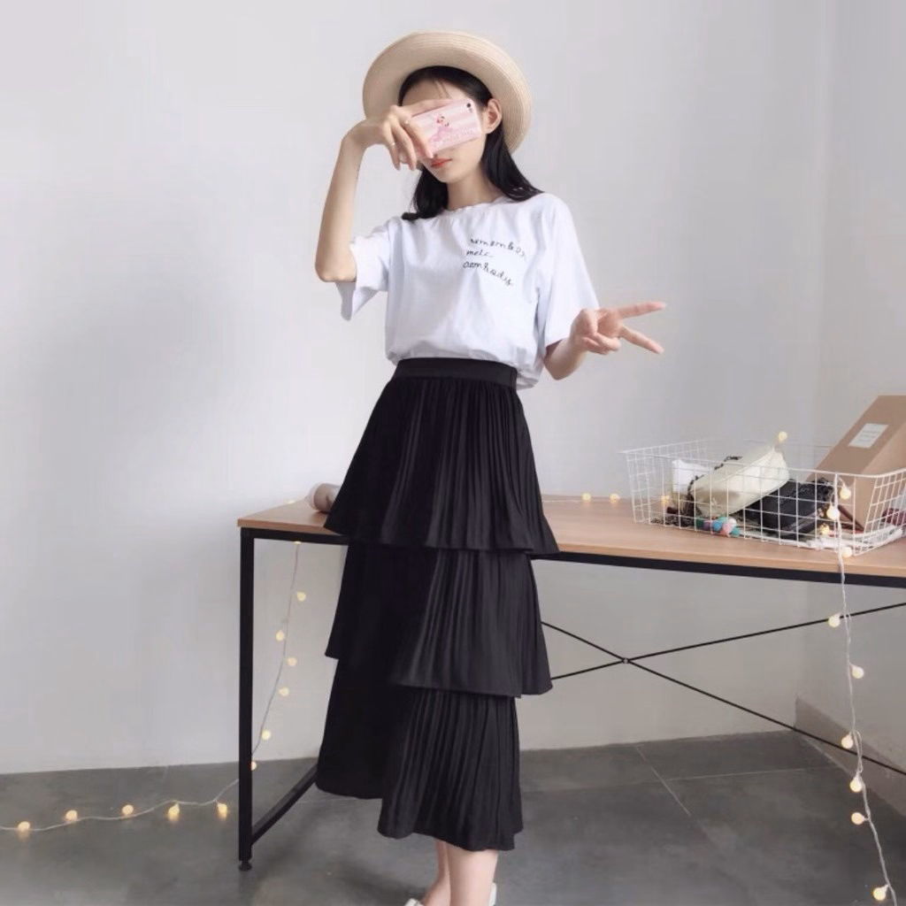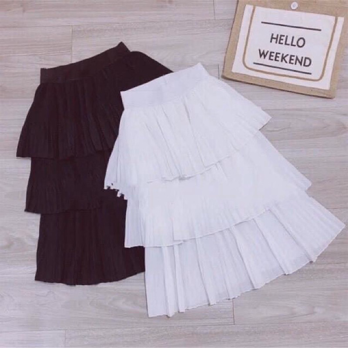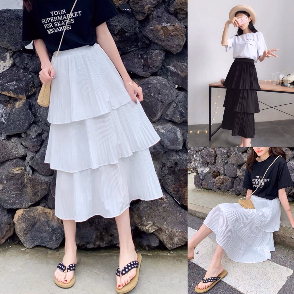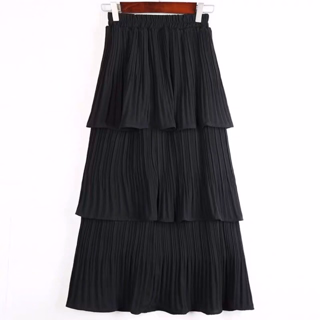 Chân Váy Xòe 3 Tầng Xếp Ly Dáng Dài , Chân Váy Midi Ulzzang Cạp Chun Hàn Quốc – Dmastore