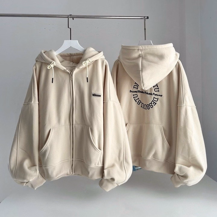 [Có Sẵn] Áo Hoodie Zip Khóa Kéo Dessu Tag Form Rộng Unisex Nam Nữ Áo Khoác Nỉ Phá Cách