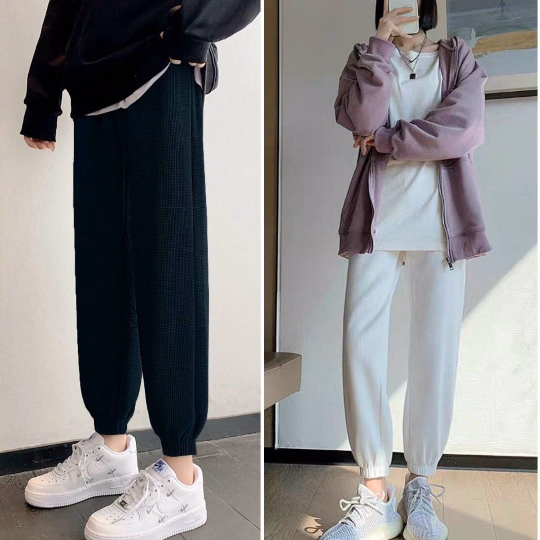 👉Các bạn có thể kết hợp quần jogger dây rút với áo thun, áo hoodie, sweater đi học thể dục, thể thao, tập gym, ở nhà hay đi làm công sở siều xinh và thoải mái