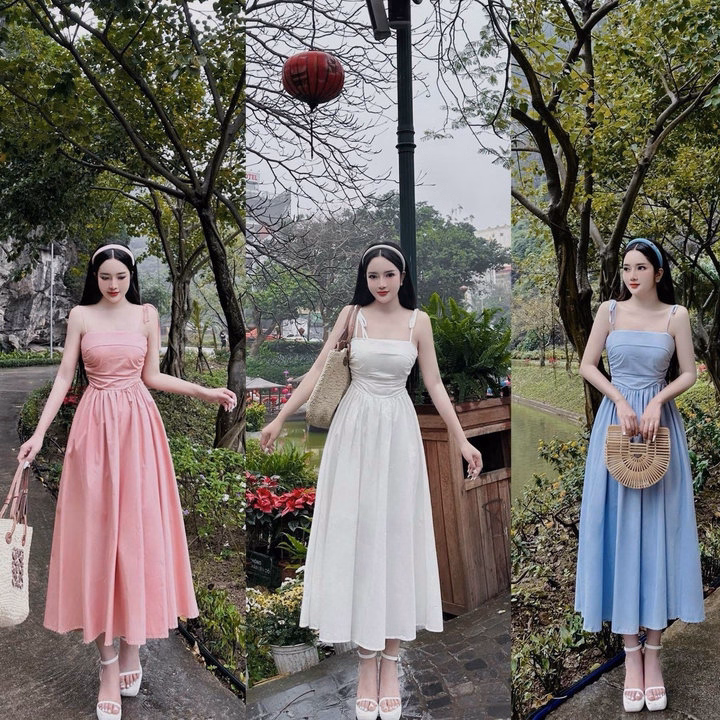 Đầm 2 Dây Cột Nơ(Có Mút Ngực)Mocking Thân Sau Bh755- Nana Freesize < 53kg Kiểu dáng đơn giản, nhẹ nhàng nhưng không kém phần năng động trẻ trung.. - Mùa hè nóng nực diện set này đi chơi ,đi biển hay , cà phê, đều đẹp thoải mái ạ - Chất vải mặc nhẹ nhàng, thoáng mát - Kiểu dáng: đơn giản, năng động,trẻ trung Thông Tin Sản Phẩm: Chất liệu: Lụa 100D Size: Freesize < 53kg Tùy Chiều Cao Vòng ngực: 80cm - 100cm. Vòng mông: 90cm - 120cm. Vòng eo: 60cm - 75cm. 1m50 – 1m55 từ 40 – 46kg vừa. 1m55 – 1m6 từ 46 – 52kg vừa. Trên 1m6 từ 51 – 53kg vừa. Xuất xứ: Việt Nam Lưu ý khi sử dụng: - Do sự chênh lệch về cài đặt ánh sáng và màn hình, màu sắc của sản phẩm thực tế có sự chênh lệch nhẹ so với thực tế. - Do đo lường thủ công khác nhau, có thể có sai số 1-3cm nhưng trong phạm vi cho phép. - Giặt riêng sản phẩm mới bằng tay với nước lạnh và phơi khô tự nhiên (tuyệt đối không sử dụng sản phẩm với các loại bột giặt có chất tẩy cao). - Lộn mặt trái trước khi giặt để đảm bảo độ bền màu của sản phẩm. - Quý khách nhận được hàng nếu có thắc mắc vui lòng liên hệ shop trước khi đánh giá sản phẩm.Quý khách nhận được hàng, ưng sản phẩm cho shop xin 1 đánh giá 5 sao kèm hình ảnh sản phẩm nhé. - Một số sản phẩm của shop là hàng Freesize, shop đều ghi rõ số kg, màu sắc, chất liệu đều được cung cấp rõ ràng. - Những trường hợp sản phẩm bị lỗi, rách hoặc sản phẩm không giống hình hay kém chất lượng, khách phải cung cấp video khi khui hàng giúp shop nhé.