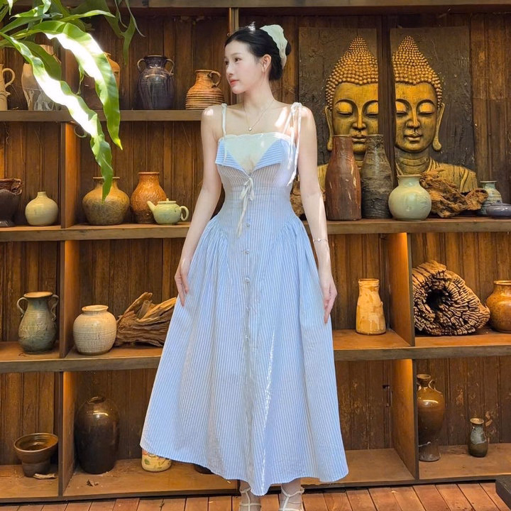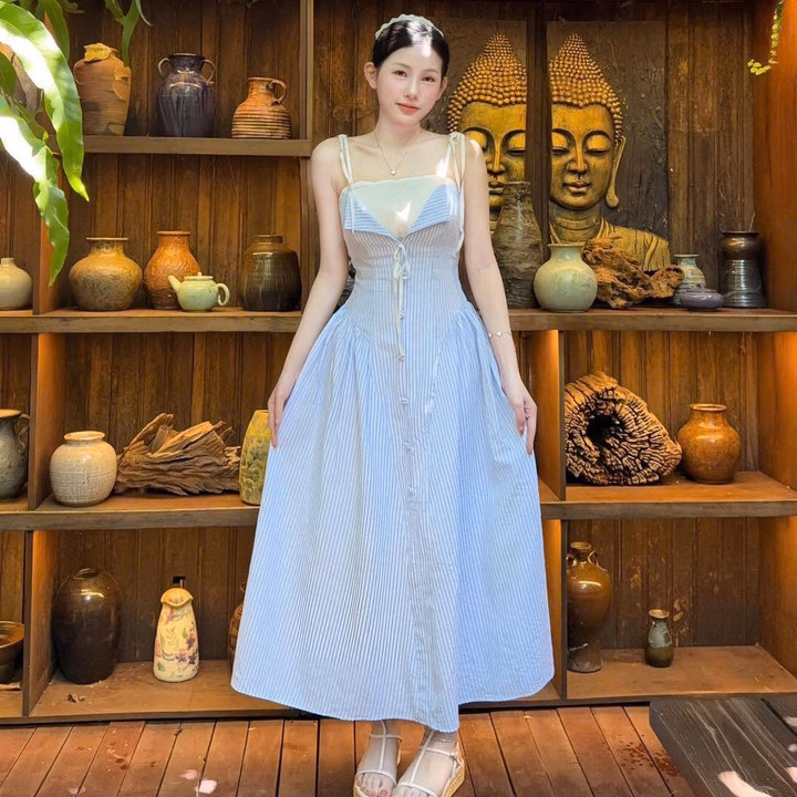 Đầm 2 Dây Dáng Dài Xòe Phối Ren Bt107jf-Sam Freesize < 53kg Với tone sang chảnh dành cho các nàng diện đi chơi, dự tiệc siêu xinh Kiểu dáng đơn giản,sang trọng,không kén dáng người mặc Thích hợp đi tiệc,cà phê, dạo phố.... V1 ( Vòng ngực): dưới 92cm V2 (Vòng Eo): dưới 78cm V3 : Dưới 92cm ☘️ 1m50 – 1m55 từ 40 – 46kg vừa ☘️ 1m55 – 1m6 từ 47 – 53kg vừa Chất liệu : Kate Phối Ren Xuất xứ : Việt Nam Kích thước : Freesize < 53kg Lưu ý : - Do sự chênh lệch về cài đặt ánh sáng và màn hình,màu sắc của sản phẩm thực tế có sự chênh lệch nhẹ so với thực tế. - Do đo lường thủ công khác nhau,có thể có sai số 1-3cm nhưng trong phạm vi cho phép. - Giặt riêng sản phẩm Mới bằng tay với nước lạnh và phơi khô tự nhiên (tuyệt đối không sử dụng sản phẩm với các loại bột giặt có chất tẩy cao) - Lộn mặt trái trước khi giặt để đảm bảo độ bền màu của sản phẩm. - Quý khách nhận được hàng nếu có thắc mắc vui lòng liên hệ shop trước khi đánh giá sản phẩm.Quý khách nhận được hàng,ưng sản phẩm cho shop xin 1 đánh giá 5 sao kèm hình ảnh sản phẩm nhé. - Một số sản phẩm của shop là hàng Freesize, shop đều ghi rõ số kg, màu sắc,chất liệu đều được cung cấp rõ ràng.Những trường hợp sản phẩm bị lỗi,rách hoặc sản phẩm không giống hình hay kém chất lượng,khách phải cung cấp video khi khui hàng giúp shop nhé.