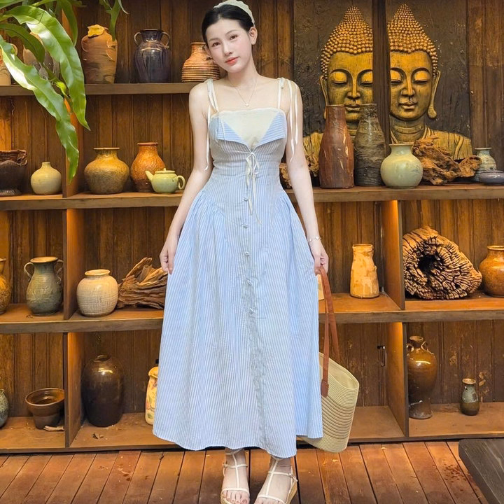Đầm 2 Dây Dáng Dài Xòe Phối Ren Tb107kh-Nana Freesize < 53kg Với tone sang chảnh dành cho các nàng diện đi chơi, dự tiệc siêu xinh Kiểu dáng đơn giản,sang trọng,không kén dáng người mặc Thích hợp đi tiệc,cà phê, dạo phố.... V1 ( Vòng ngực): dưới 92cm V2 (Vòng Eo): dưới 78cm V3 : Dưới 92cm ☘️ 1m50 – 1m55 từ 40 – 46kg vừa ☘️ 1m55 – 1m6 từ 47 – 53kg vừa Chất liệu : Kate Phối Ren Xuất xứ : Việt Nam Kích thước : Freesize < 53kg Lưu ý : - Do sự chênh lệch về cài đặt ánh sáng và màn hình,màu sắc của sản phẩm thực tế có sự chênh lệch nhẹ so với thực tế. - Do đo lường thủ công khác nhau,có thể có sai số 1-3cm nhưng trong phạm vi cho phép. - Giặt riêng sản phẩm Mới bằng tay với nước lạnh và phơi khô tự nhiên (tuyệt đối không sử dụng sản phẩm với các loại bột giặt có chất tẩy cao) - Lộn mặt trái trước khi giặt để đảm bảo độ bền màu của sản phẩm. - Quý khách nhận được hàng nếu có thắc mắc vui lòng liên hệ shop trước khi đánh giá sản phẩm.Quý khách nhận được hàng,ưng sản phẩm cho shop xin 1 đánh giá 5 sao kèm hình ảnh sản phẩm nhé. - Một số sản phẩm của shop là hàng Freesize, shop đều ghi rõ số kg, màu sắc,chất liệu đều được cung cấp rõ ràng.Những trường hợp sản phẩm bị lỗi,rách hoặc sản phẩm không giống hình hay kém chất lượng,khách phải cung cấp video khi khui hàng giúp shop nhé.