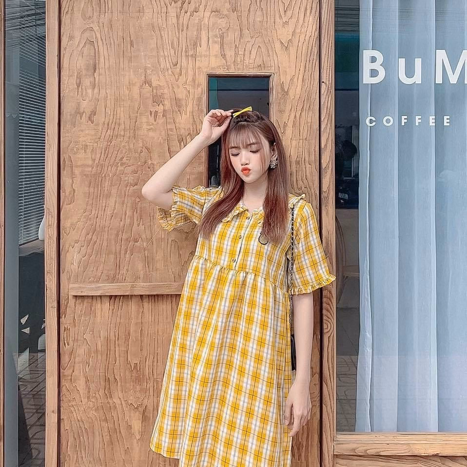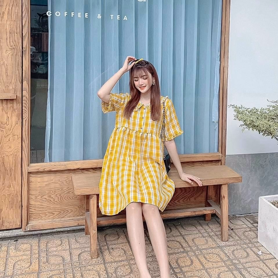 Đầm Babydoll Họa Tiết Caro Chất Kate V55 – Cloudy Dress
