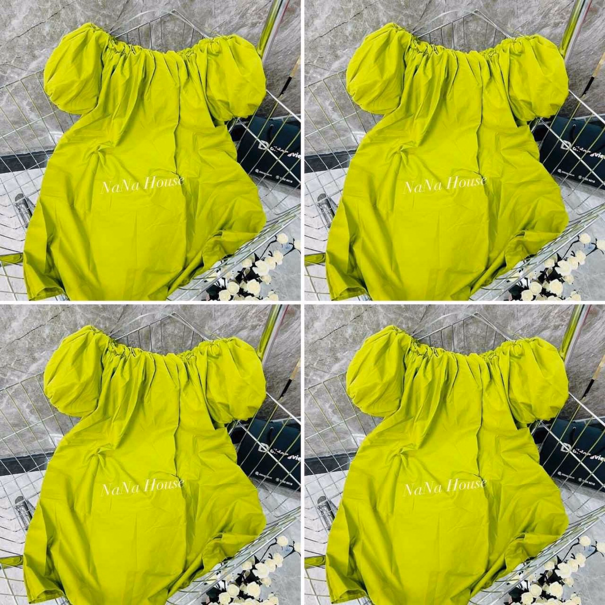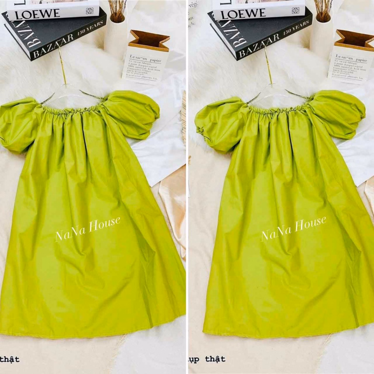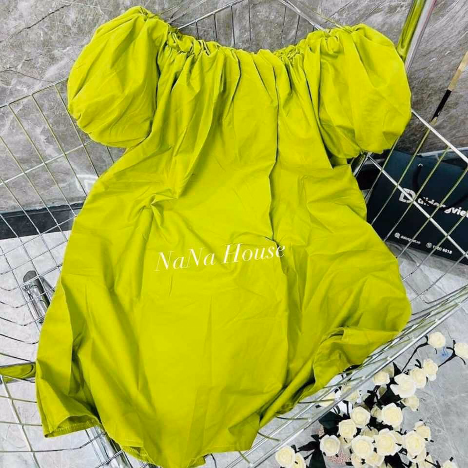 Đầm Babydoll Xanh Tay Phồng Phom Rộng – Nana House