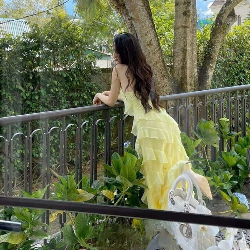 Tên sản phẩm: Đầm Bèo Gơn Sóng Hở Vai Voan Cao Cấp V985H