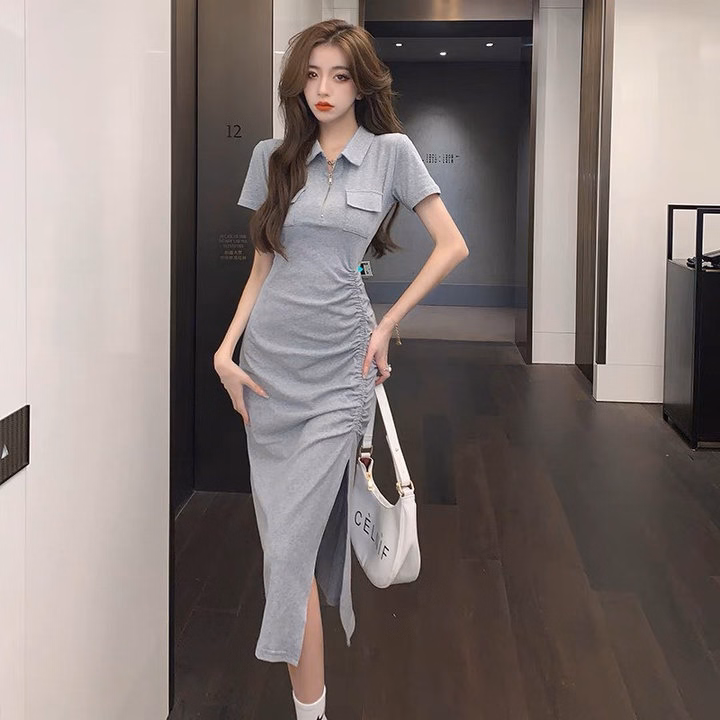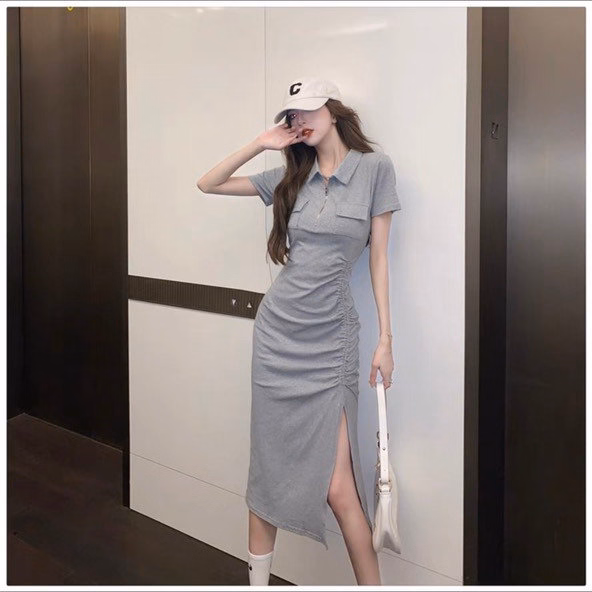 Đầm Body Gân Tăm Form Dài Rút 1 Bên Cổ Sơ Mi – Lê Phương Boutique