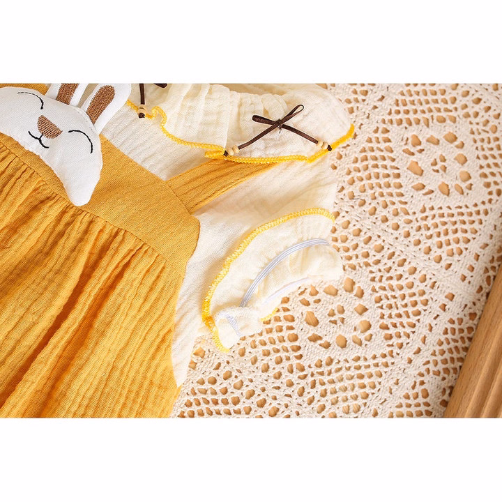 Đầm Body Tay Ngắn Cổ Tròn Giả Yếm Thỏ 3D Vàng Cho Bé Gái Sơ Sinh 1 2 Tuổi Từ 5-13Kg Dành Cho Bé Gái