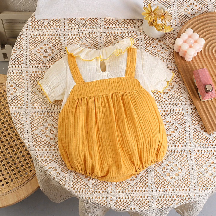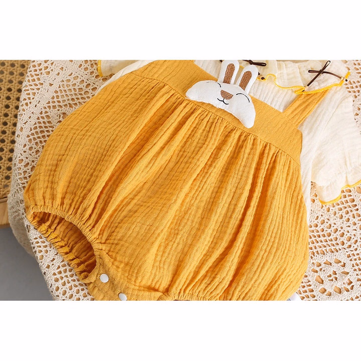 Body Tay Ngắn Cổ Tròn Giả Yếm Thỏ 3D Vàng Cho Bé Gái Sơ Sinh 1 2 Tuổi Từ 5-13kg Dành Cho Bé Gái