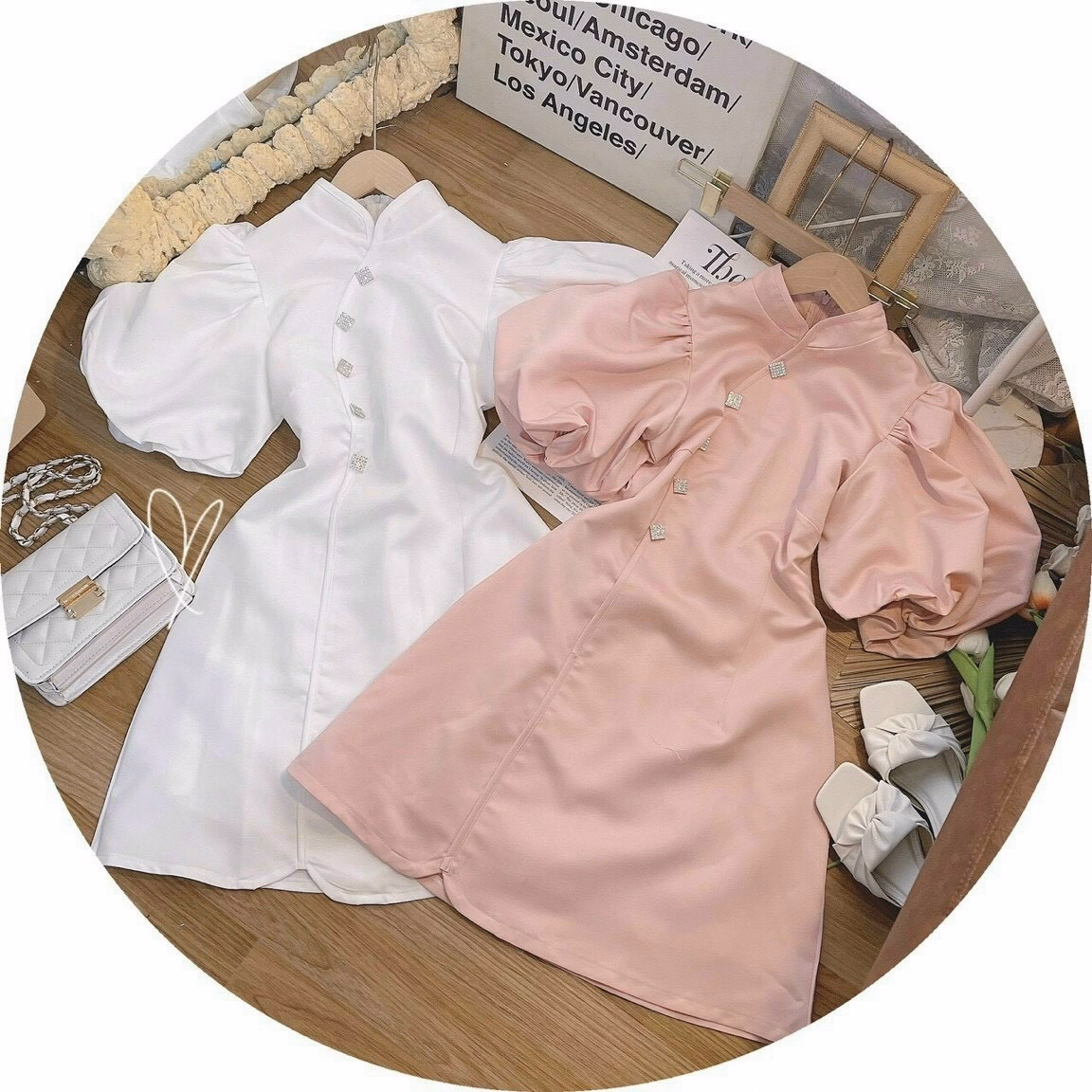 Đầm Cổ Tèo Tay Phồng Chất Coton Lạnh V39 – Haka Mây