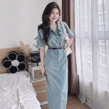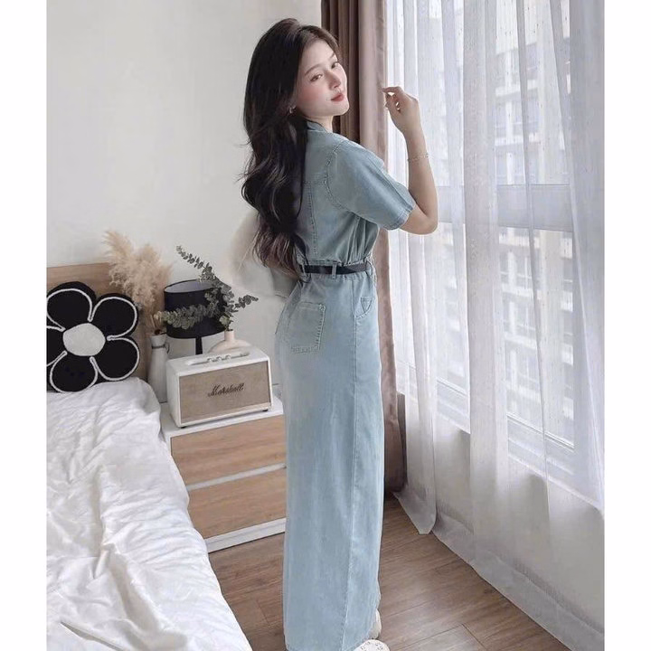 Đầm Denim Nhún Eo Túi Hộp Kèm Dây Nịt Bt125D-Sam Store