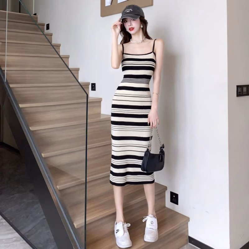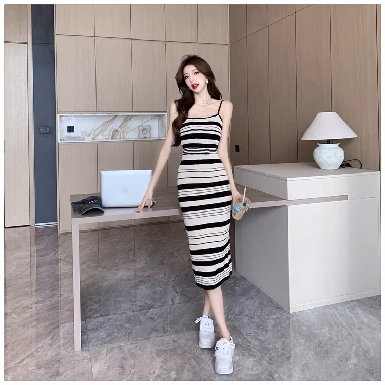 Tên sản phẩm: Đầm Dệt Kim Họa Tiết Kẻ Sọc Phong Cách Hong Kong Thời Trang Mùa Hè Cho Nữ Hn01 – Be Yourself