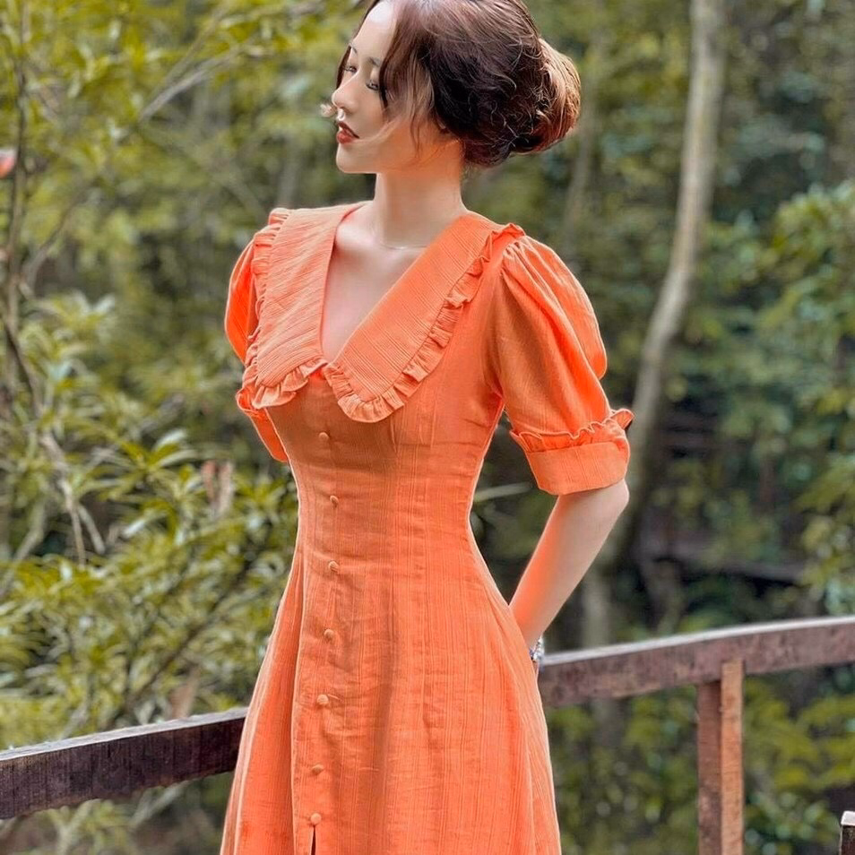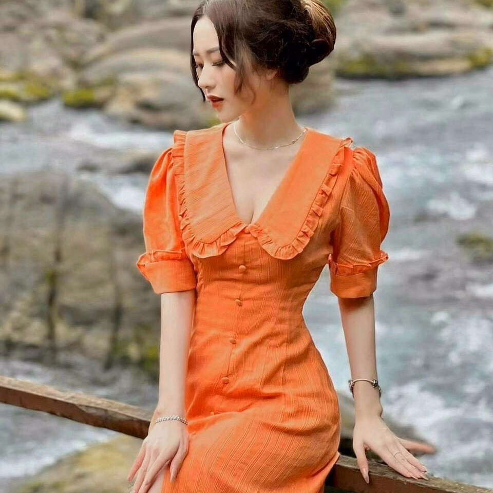 Tên sản phẩm: Đầm Dự Tiệc Đính Nút Cổ Bèo Sang Chảnh V484 – Haka Mây