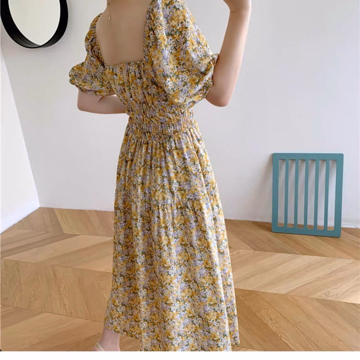 Tên sản phẩm: Đầm hoa lụa nhí dáng dài tay bồng cổ vuông V107 – Cloudy Dress