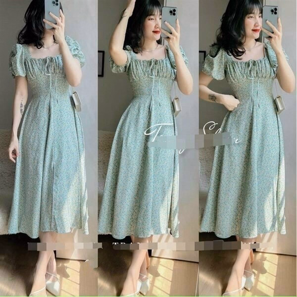 Tên sản phẩm: Đầm hoa nhí lụa cột nơ ôm eo dáng xòe nữ tính V100 – Cloudy Dress