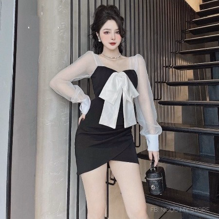 Tên sản phẩm: Đầm Lụa Phối Lưới Kèm Nơ V318 – Cloudy Dress