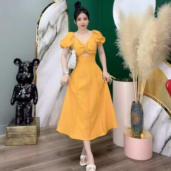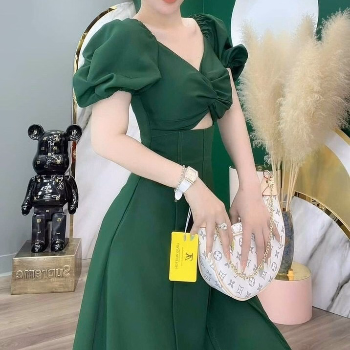 Tên sản phẩm: Đầm lụa xoắn ngực khoét eo V202 – Cloudy Dress