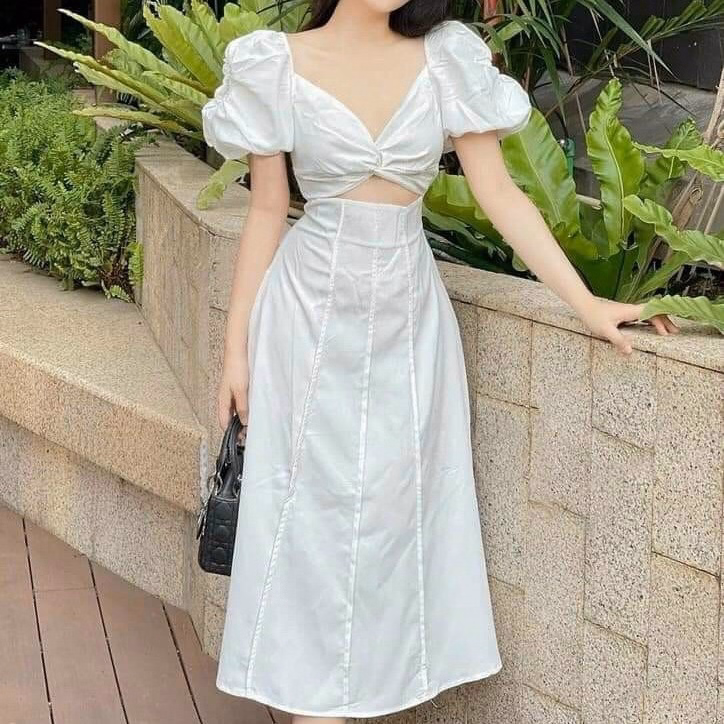 Đầm Lụa Xoắn Ngực Khoét Eo V202 – Cloudy Dress