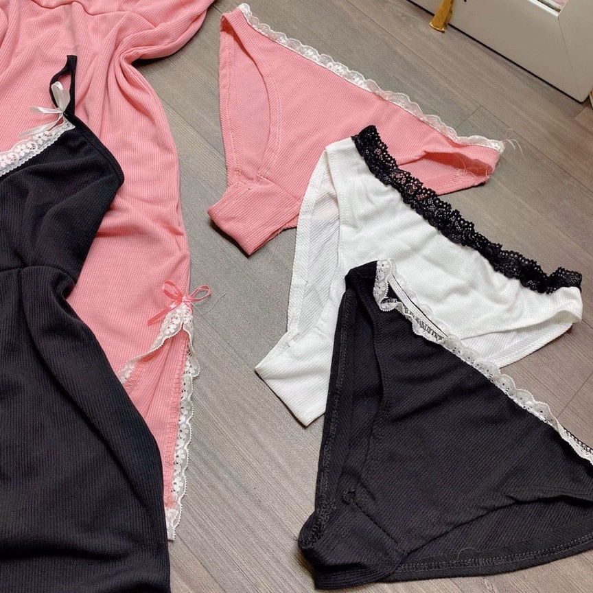 Sản phẩm gồm đầm ngắn 2 dây phối ren kèm quần chíp cực sexy.