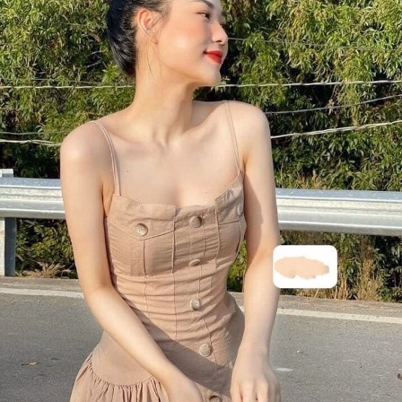 Tên sản phẩm: Đầm nhún xoè hai dây cài nút thật chất đũi V180 – Cloudy Dress