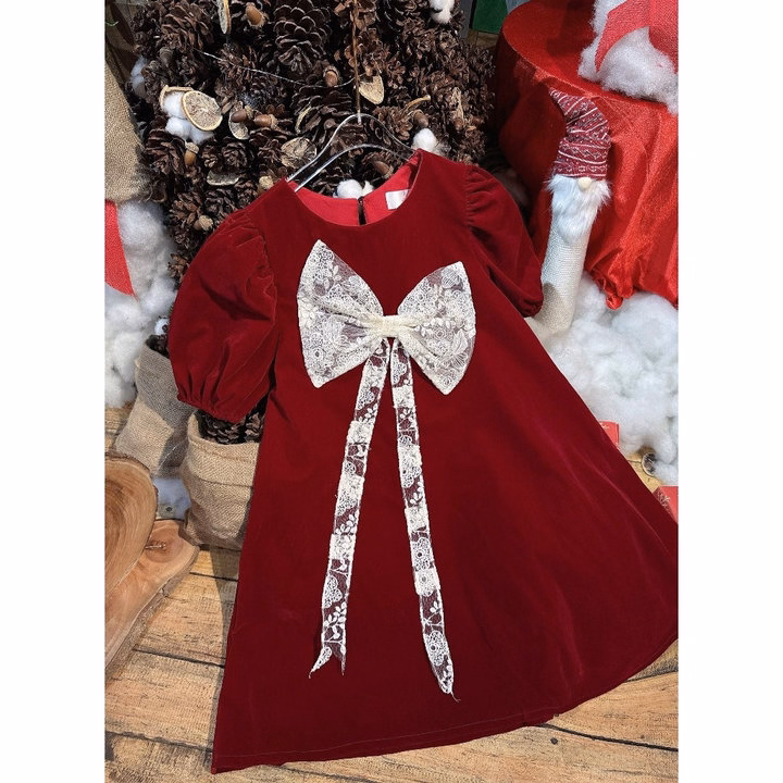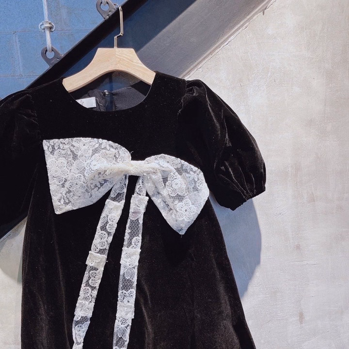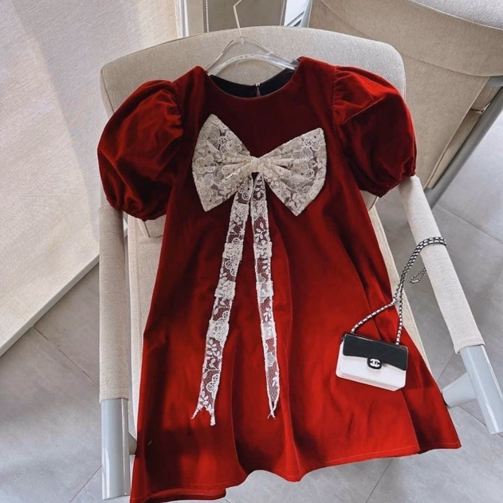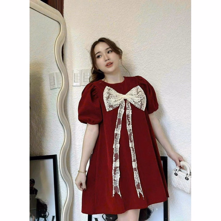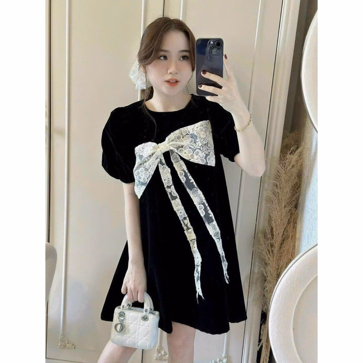 Đầm Nhung Babydoll Phối Nơ Ren Bh856 – Nana House