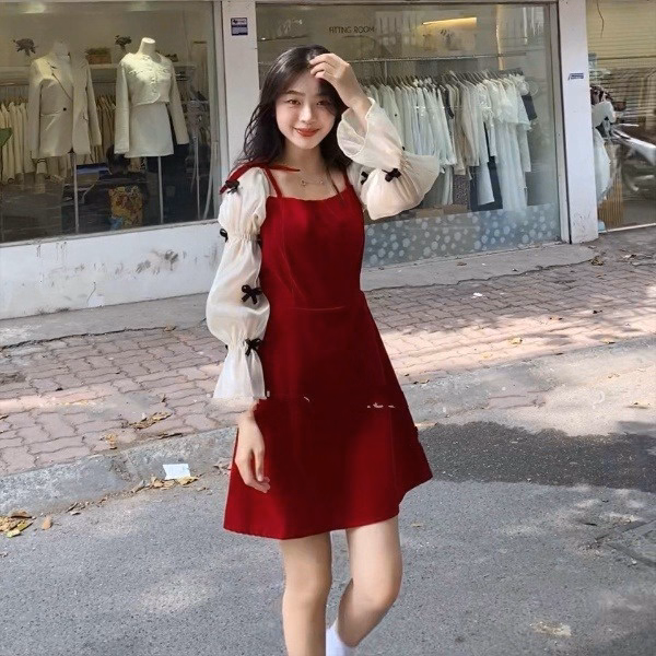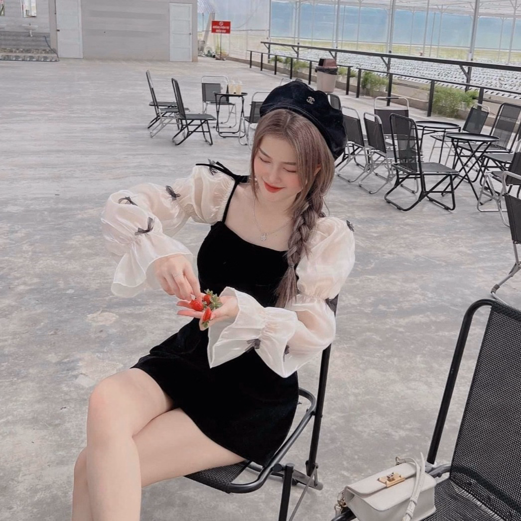 Đầm Nhung Đính Nơ Tay Dài (Có Mút) – Cloudy Dress