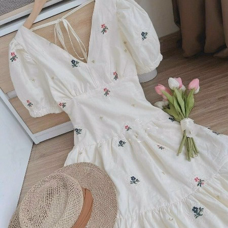 (Xả Hàng) Váy Babydoll Phối Cổ Tiểu Thư Phong Cách Hàn Quốc Cực Xinh