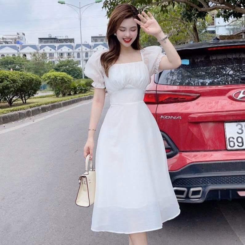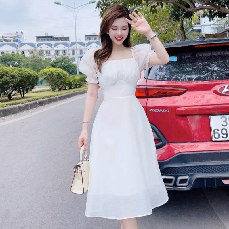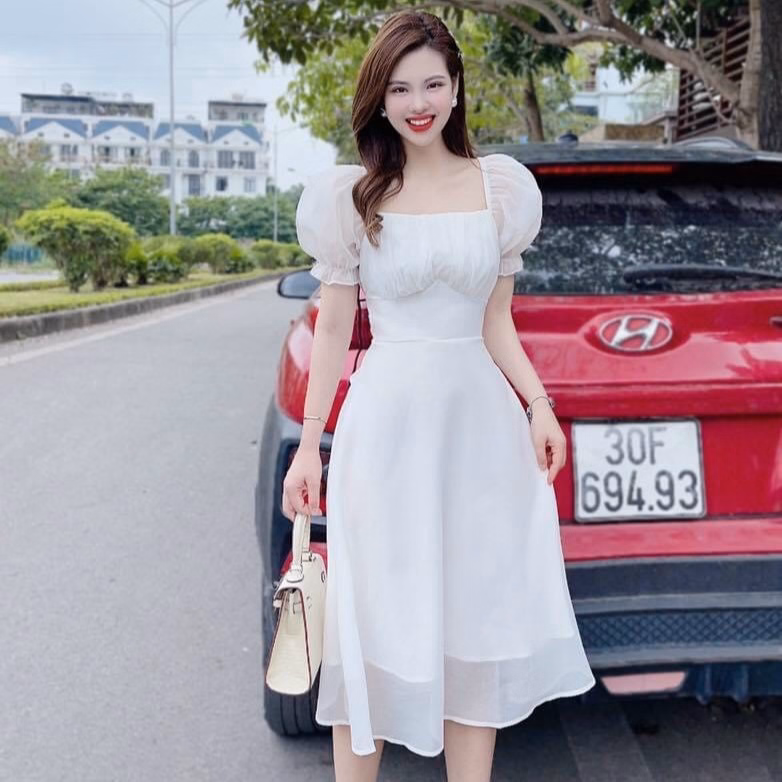 Đầm Nữ Cổ Vuông Tay Phồng Dáng Xòe Dài Chất Voan Chinfon M470 – Aine