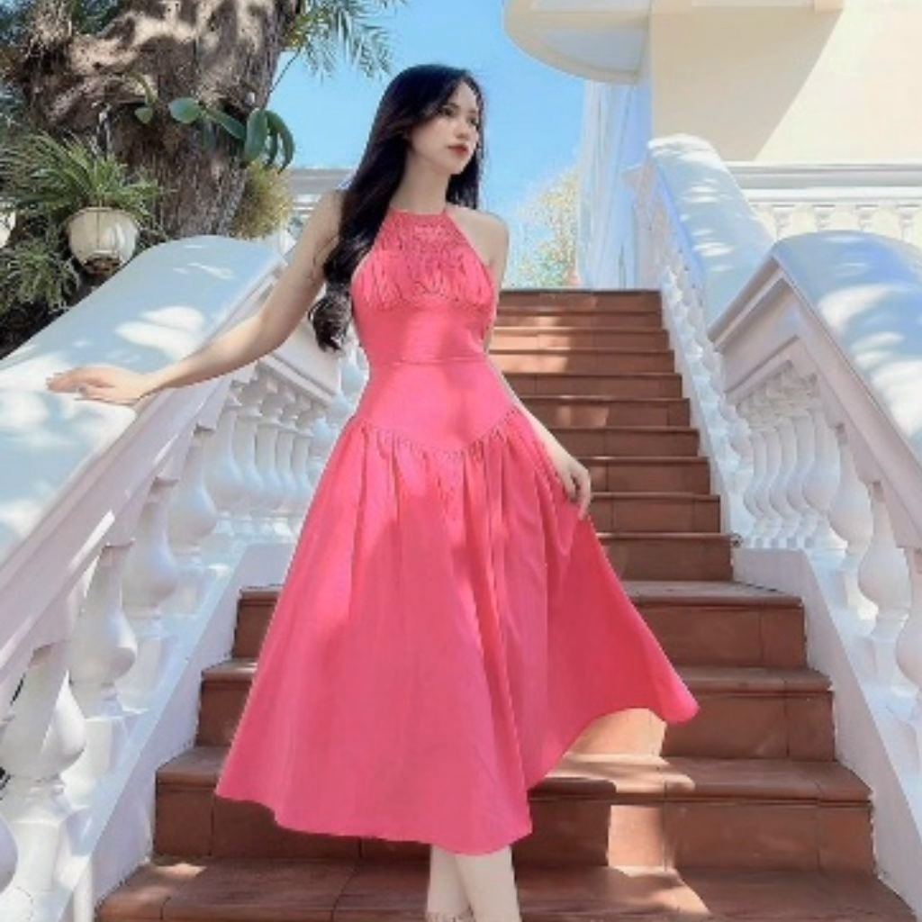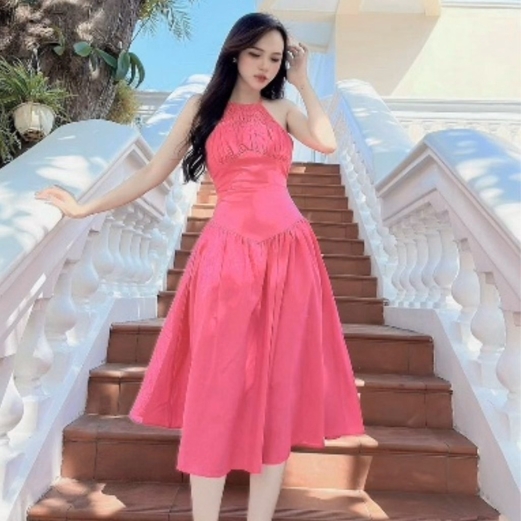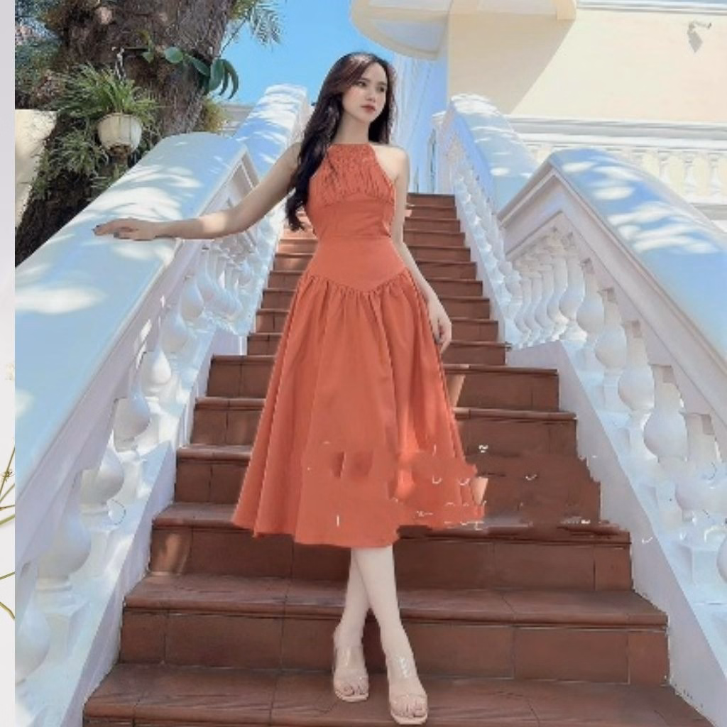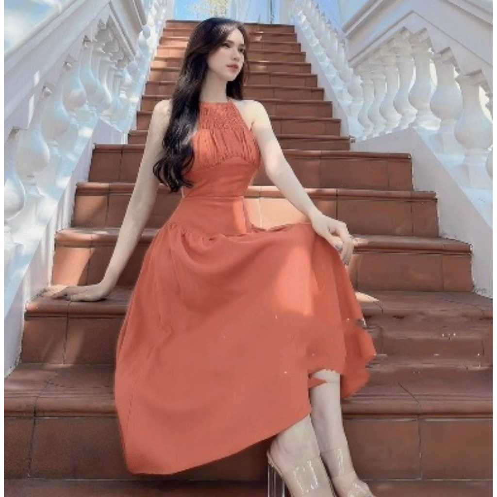 Tên sản phẩm: Đầm Nữ Cổ Yếm Nhún Ngực Hở Lưng Ôm Eo Dáng Dài Chất Cotton Lạnh T780 – Lisa