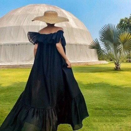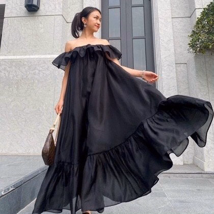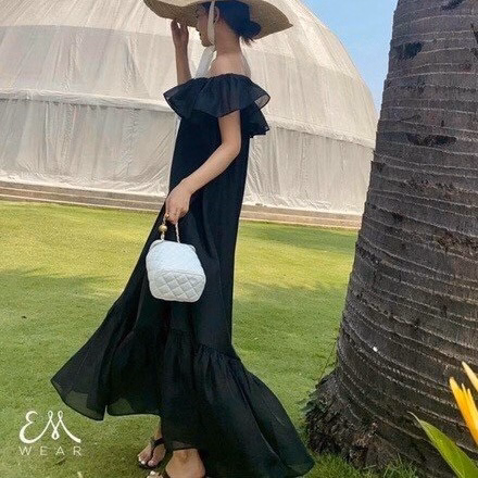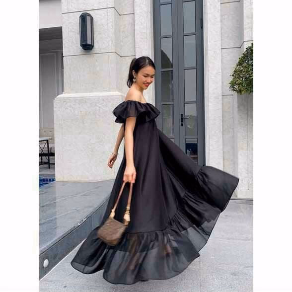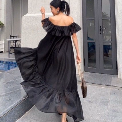 Đầm Nữ Maxi Voan Bèo 2 Lớp Màu Đen – Ausa House