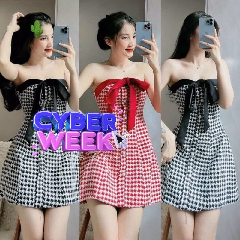 Đầm Nữ Ống Đính Nơ Caro – Ausa House