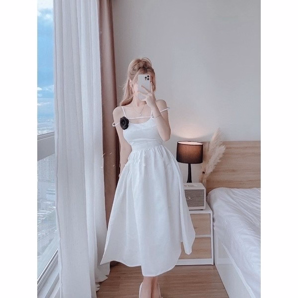 Đầm Nữ Phối Dây Kết Hoa Kiểu Dáng Ôm Eo Xòe Dự Tiệc Sang Trọng V06 – Aine