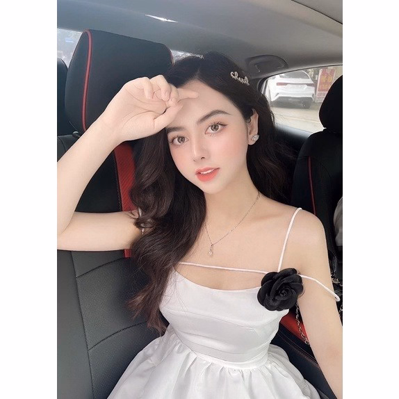 Tên sản phẩm: Đầm Nữ Phối Dây Kết Hoa Kiểu Dáng Ôm Eo Xòe Dự Tiệc Sang Trọng V06