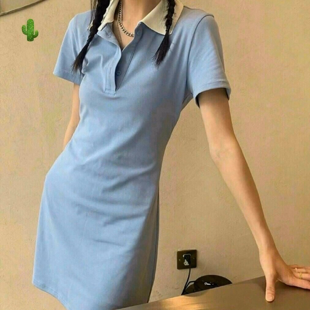 Đầm Nữ Suông Xanh Phối Cổ Trụ Trắng – Ausa House