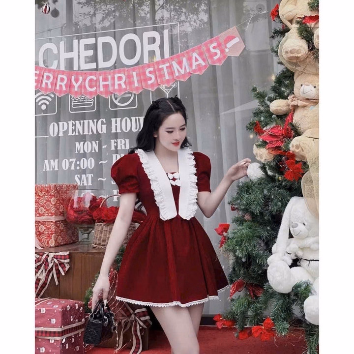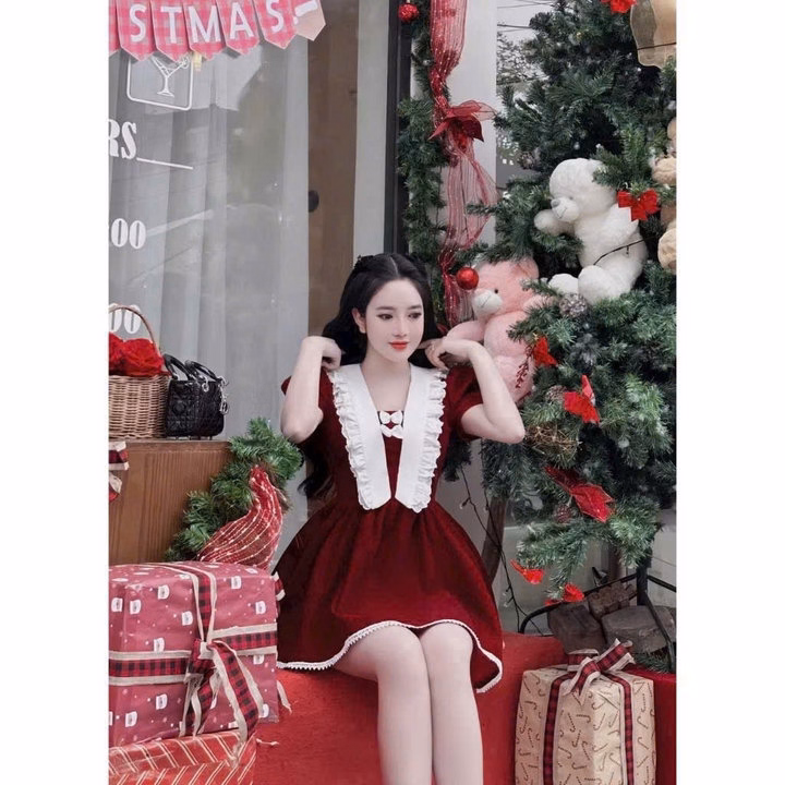 Đầm Nữ Vải Nhung Phối Cổ Ren Chữ V Tay Bồng Siêu Xinh Cho Các Nàng Tp777 – Golden Dream