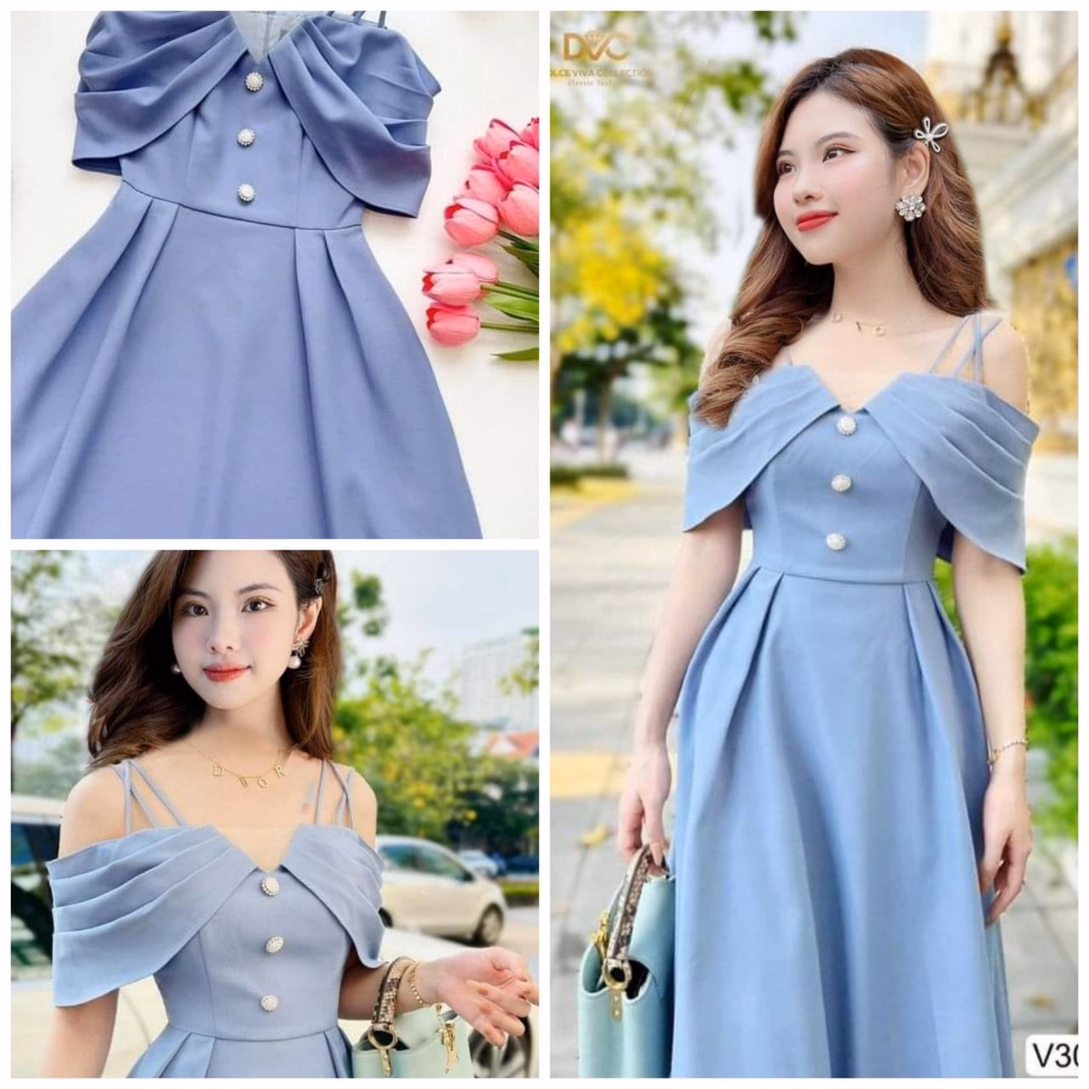 (Xả Hàng) Váy Babydoll Phối Cổ Tiểu Thư Phong Cách Hàn Quốc Cực Xinh