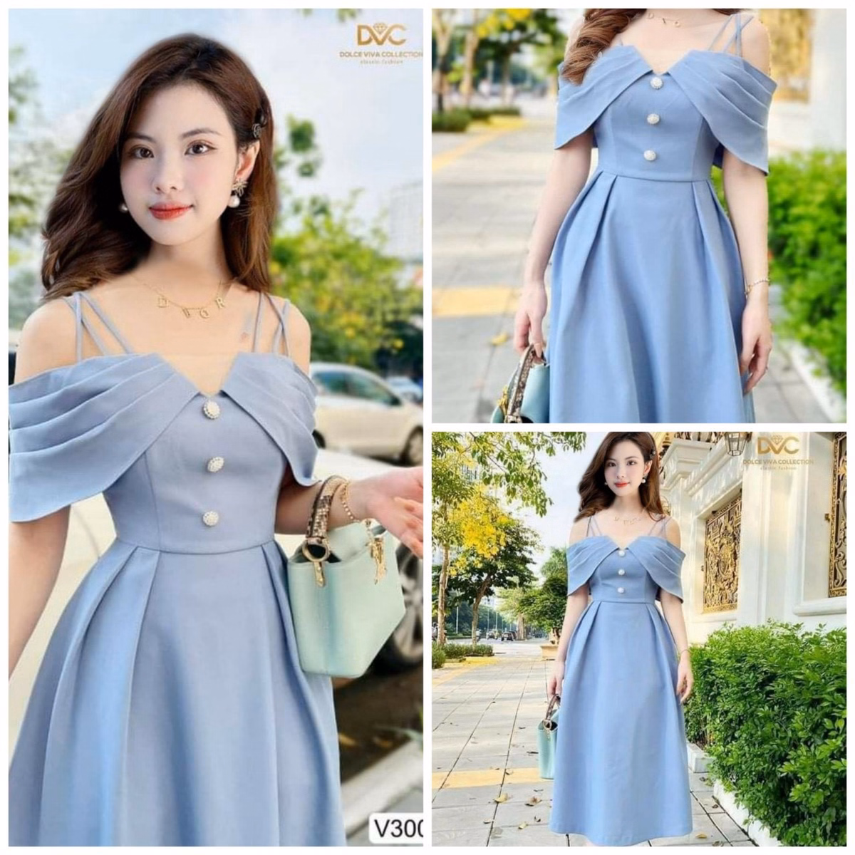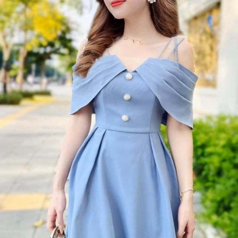 Tên sản phẩm: Đầm Phối Lưới Kim Sa Đan Dây Vai V978H