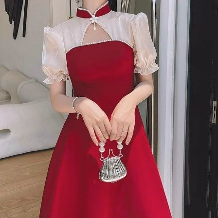 Tên sản phẩm: Đầm phối voan tơ đính cườm kèm phụ kiện chất umi phối voan tơ V38 – Haka Mây