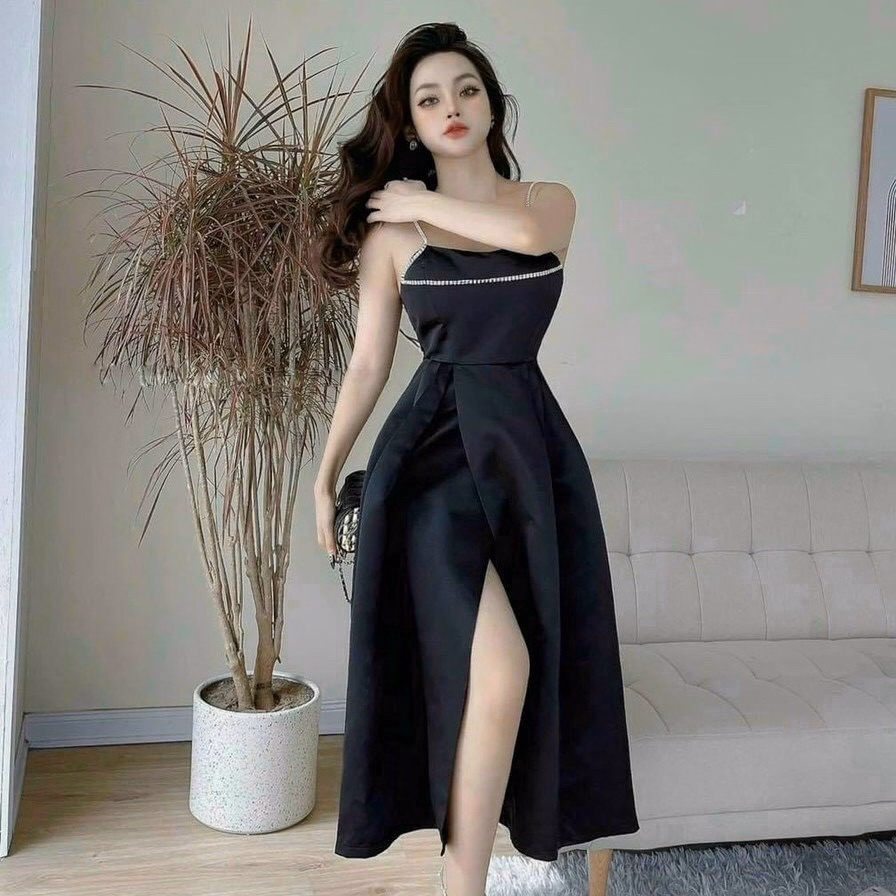 Tên sản phẩm: Đầm Tapta Phối Dây Cườm Giả Đá Sang Chảnh V10 – Haka Mây