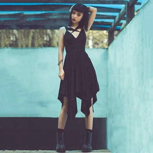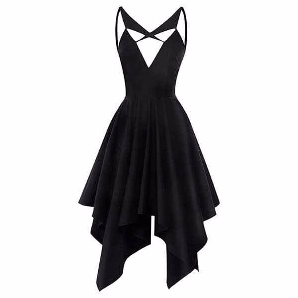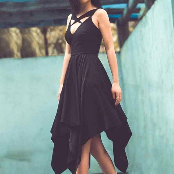 Đầm thun cổ chữ V chéo dây với chất liệu thun mặc mát và thoải mái dáng xòe. Phù hợp đi tiệc đêm sang trọng.
