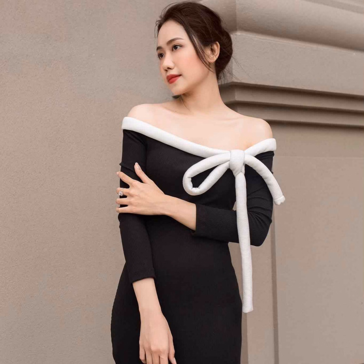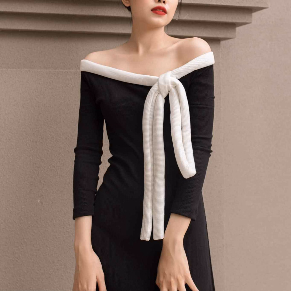 Màu sắc: Đen phối nơ trắng