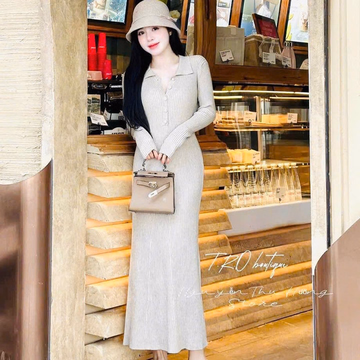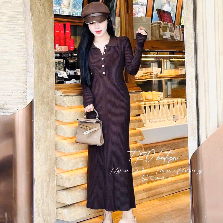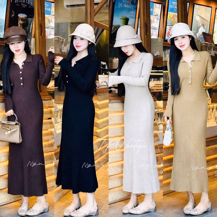 Đầm Thun Gân Tăm Dáng Dài Cổ Trụ Bt74De-Sam Store