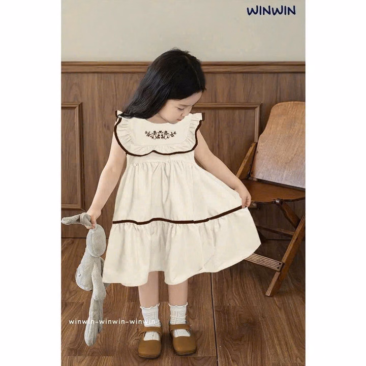 Đầm Tiểu Thư Bé Gái Kate Hàn Cao Cấp Từ 8-40Kg Kiểu Babydoll Thêu Hoa Nhí Dành Cho Bé Gái