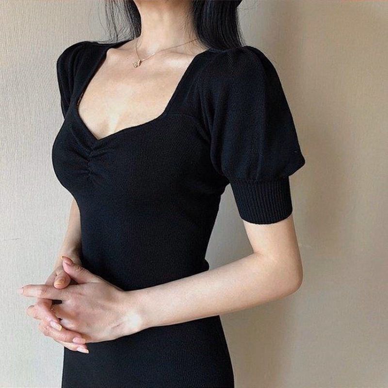 Đầm Váy Body Tay Phồng Nhún Ngực Thun Borip Ug55 – Nana House