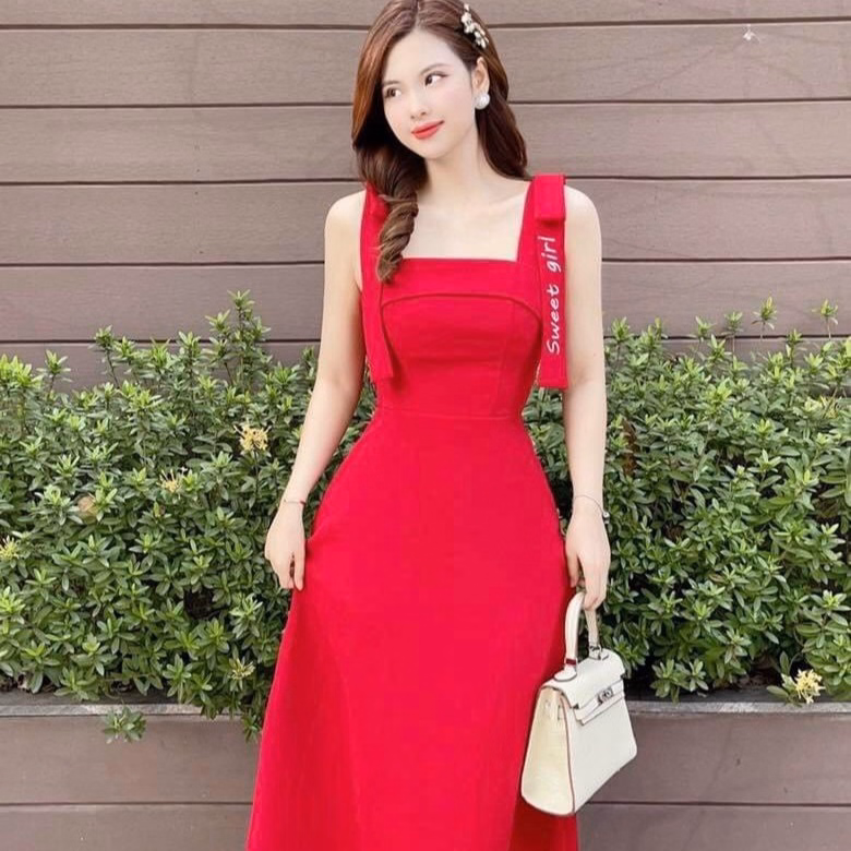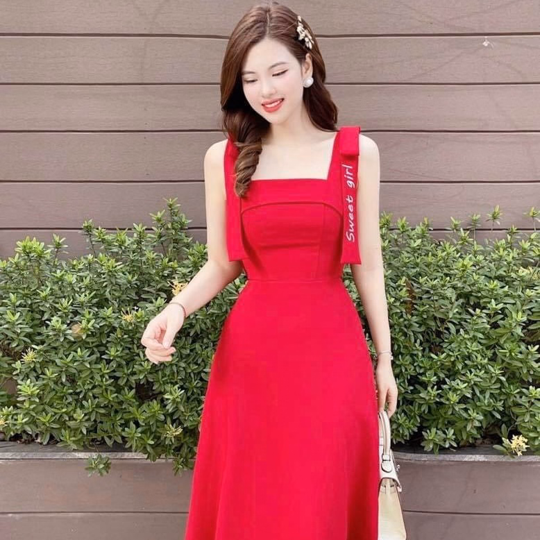 Đầm Váy Nữ 2 Dây Kết Nơ Màu Đỏ Dd880 – Nana House