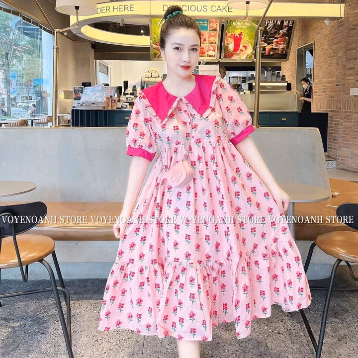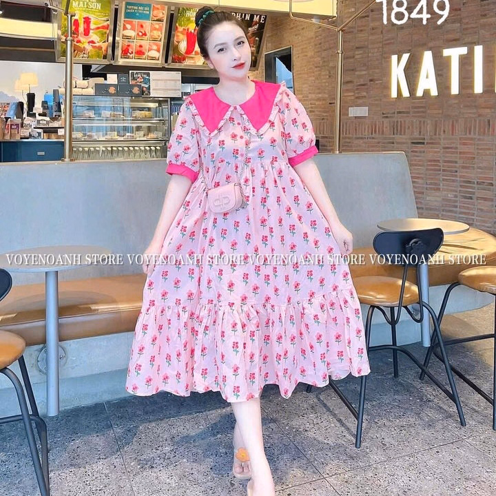 Đầm Váy Nữ Baby Dool Lụa Hoa Cổ Lá Sen Bt73Re-Sam Store