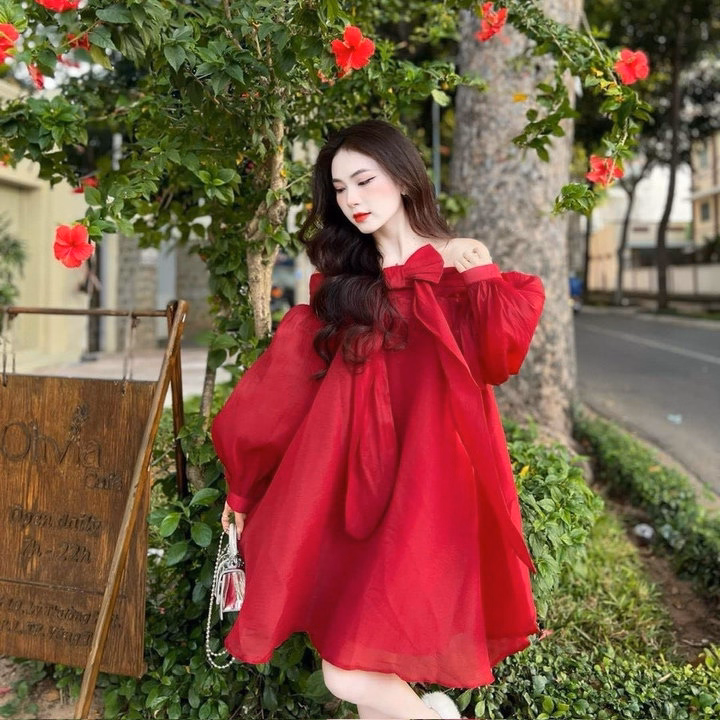 Đầm Váy Nữ Babydoll Tơ Nến Rớt Vai Tay Dài Bh853- Nana House