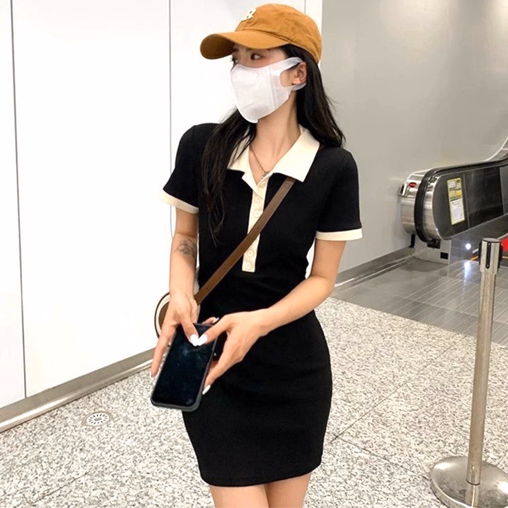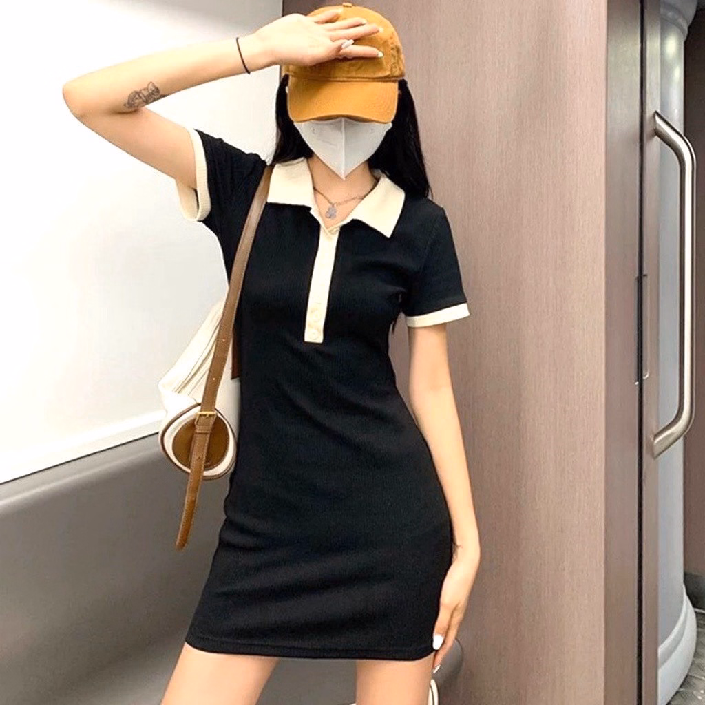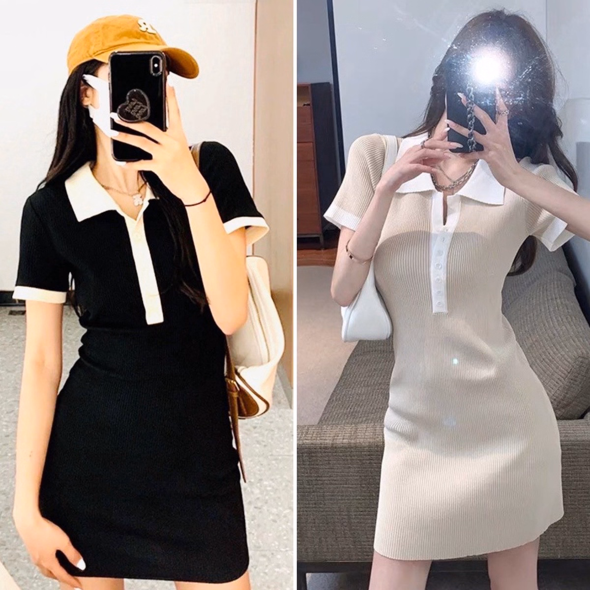Đầm Váy Nữ Body Cổ Polo Tay Ngắn Dáng Ôm Chất Thun Gân Sa01 – Sam Store