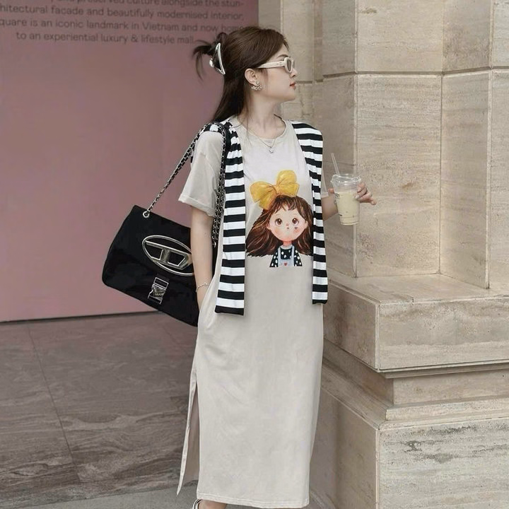 Đầm Váy Nữ In Hình Cô Gái Kèm Choàng Vạt Sh855- Sam Store